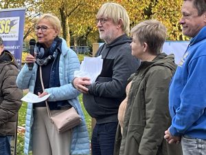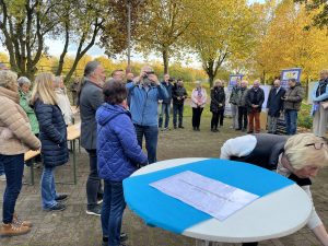 Feierlich neben viel Stadt- und Vereinsprominenz nahmen dann  Astrid , Uli und Uwe und unsere Bürgermeisterin „die Schüppe“ selbst in die Hand. Im Anschluß gab es dann neben einer kleinen Stärkung viel Gelegenheit für einen Austausch und um auf die Pläne zu schauen.