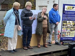 am Donnerstag fand der Spatenstich für unser neues Vereinsheim statt. In der Eröffnung dankte Uli Kather den vielen Unterstützern, die auf einer langen Liste standen und die das Projekt mit auf die Beine gestellt haben.  Des Weiteren gab es einen kleinen Rückblick auf die letzten 25 Jahre und zusammen mit Astrid wurden allen Anwesenden nochmals die Bedeutung der Erler Sportgemeinschaft für den Stadtteil deutlich. Auch unsere Bürgermeisterin Frau Martina Rudowitz dankte allen Beteiligten für das Engagement.
